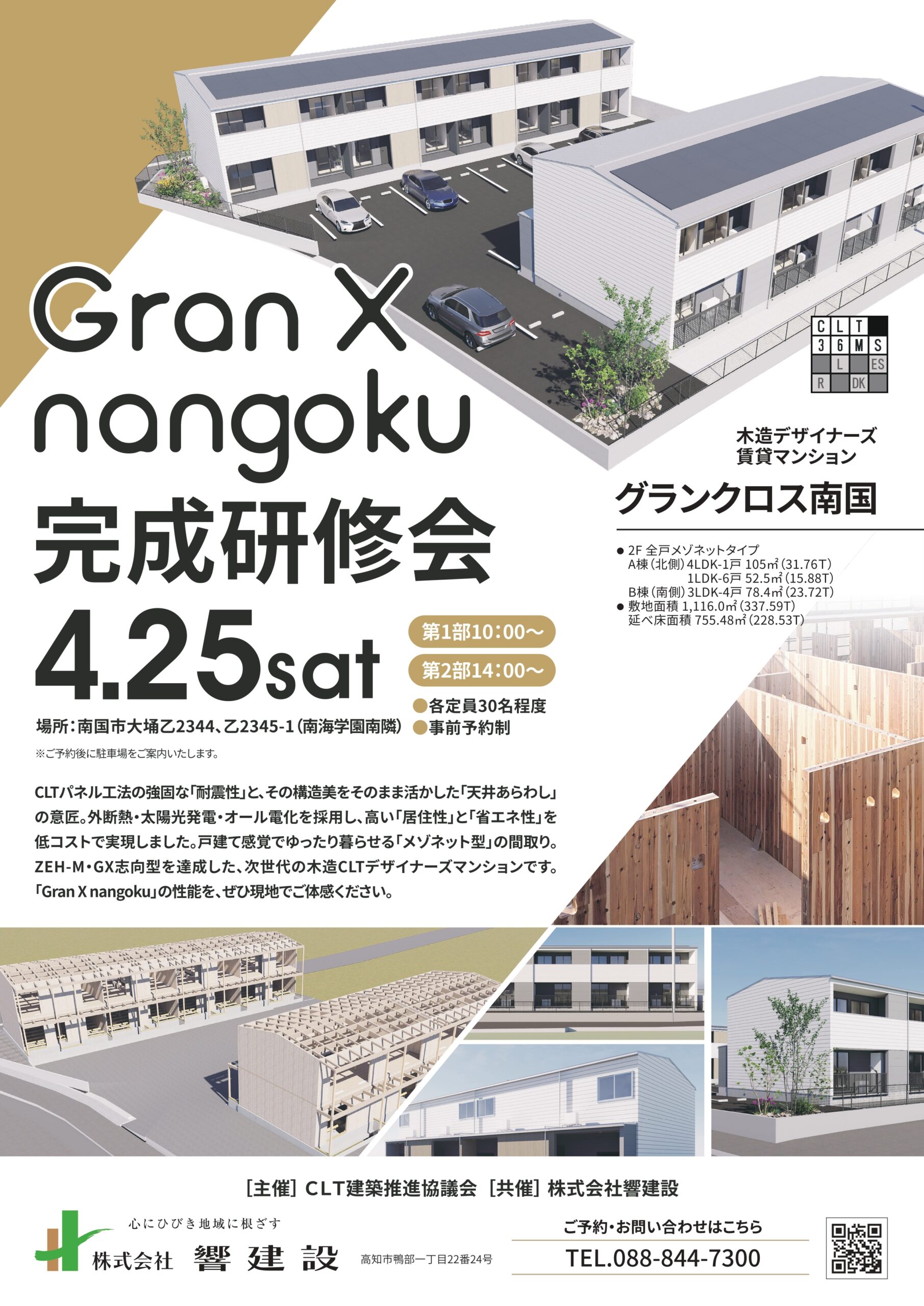 CLTマンション【Gran X nangoku(グランクロス南国)】の完成研修会をCLT建築推進協議会さまと共催で開催します。